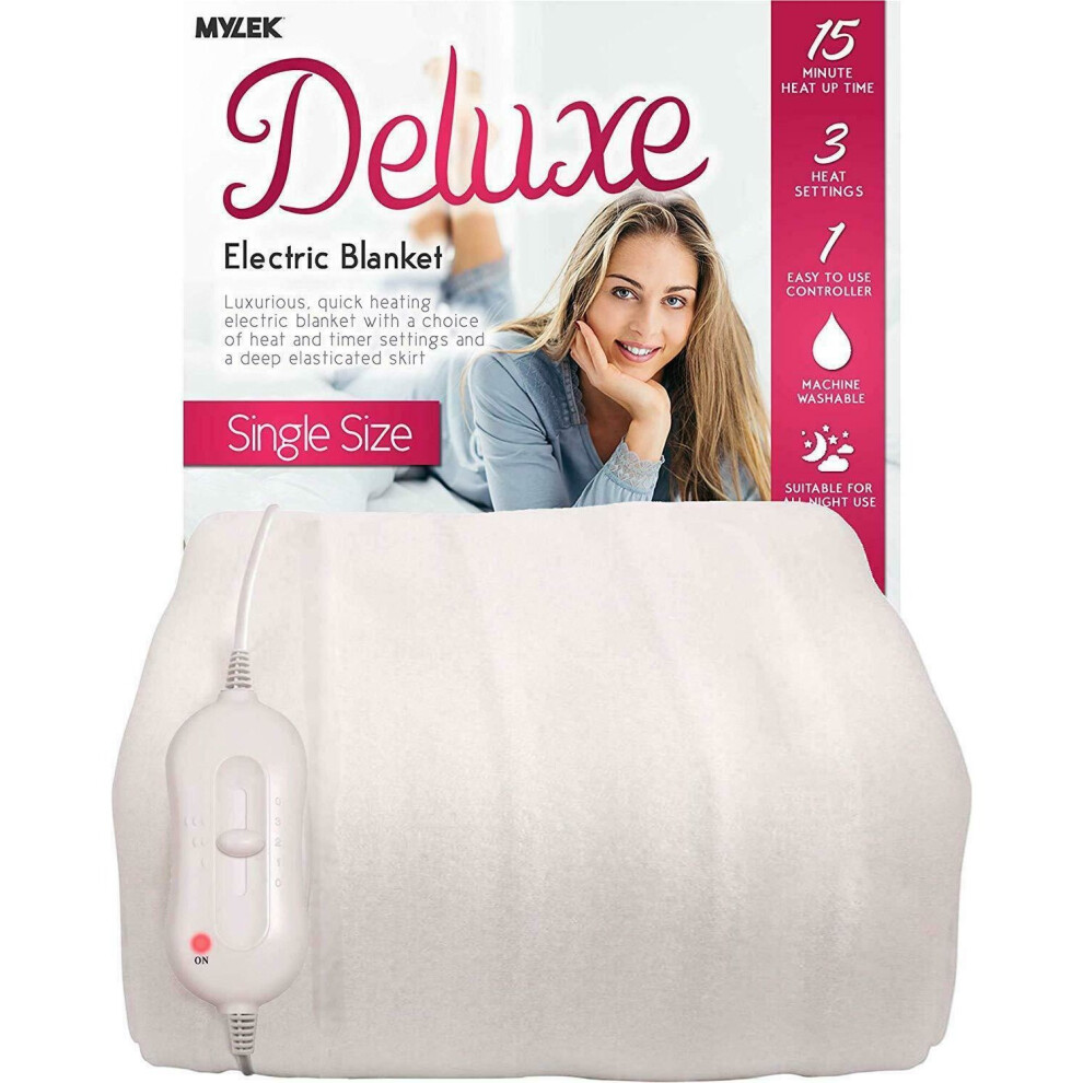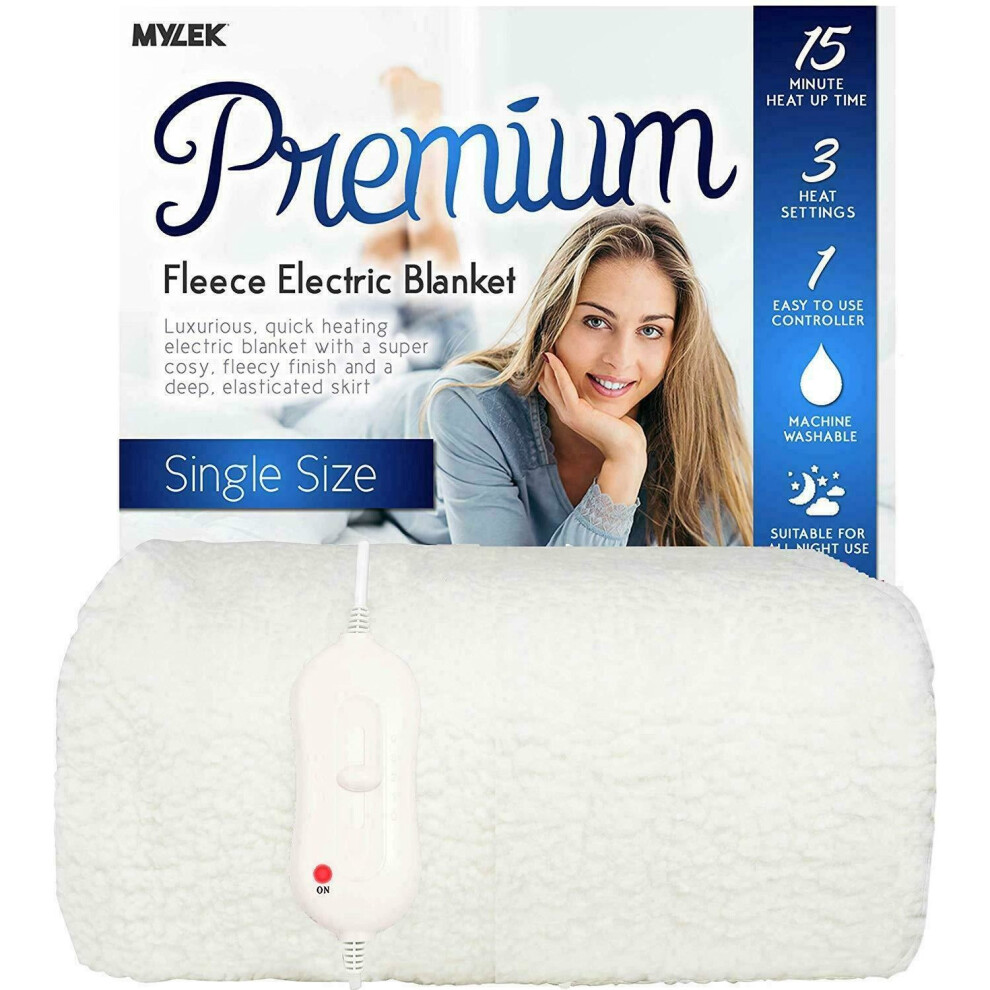 (Fleece, Single) Mylek Heated Electric Blanket Machine Washable