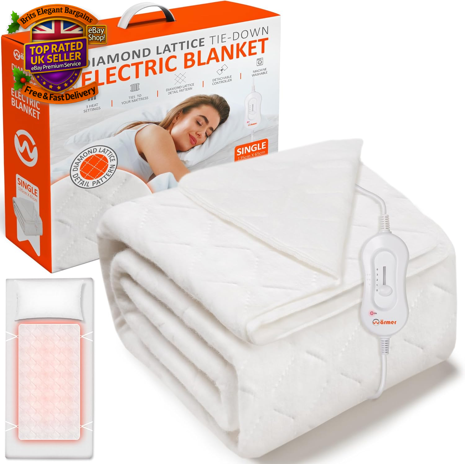 Machine Washable Single Electric Blanket Heated Underblanket 3 Heat Settings