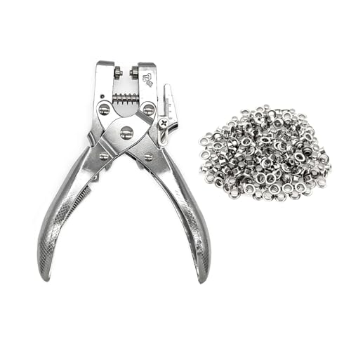 JZK Heavy Duty 5mm Single Hole Punch and Eyelet riveting Pliers Set with 200 Silver Rivet for Paper Cardboard Leather Belt Cloth Thin Plastic, Metal Stud Punch kit Hole Puncher Tool