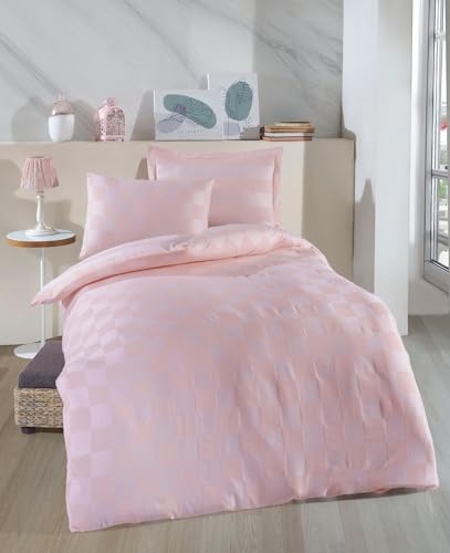Nuit Des Rêves Ranforce Single Quilt Cover Set (135 x 200 cm), 100% Cotton, Pink & White, Machine Washable, 145 Thread Count, Envelope & Button Closure, Cosy & Stylish Bedding