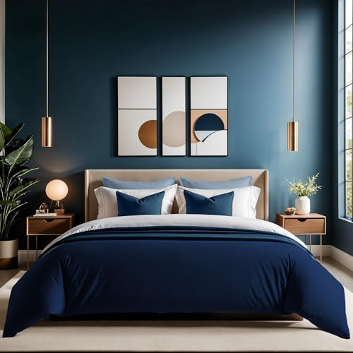 Premium Ranforce Single Quilt Cover, Dark Blue, 135 x 200 cm, 100% Cotton, 145 Thread Count, Button Closure, Machine Washable at 30°C, Soft and Durable