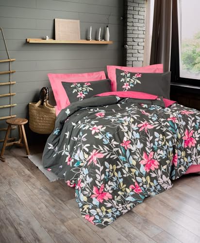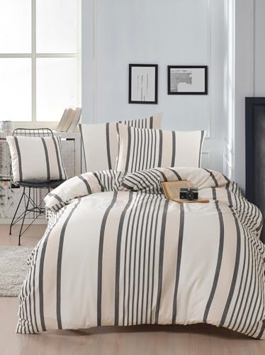 Nuit Des Rêves Ranforce Single XXL Quilt Cover Set, Anthracite, 155 x 220 cm, 100% Cotton, Pigment Printed, Machine Washable, Button Closure, Stylish & Comfortable Bedding