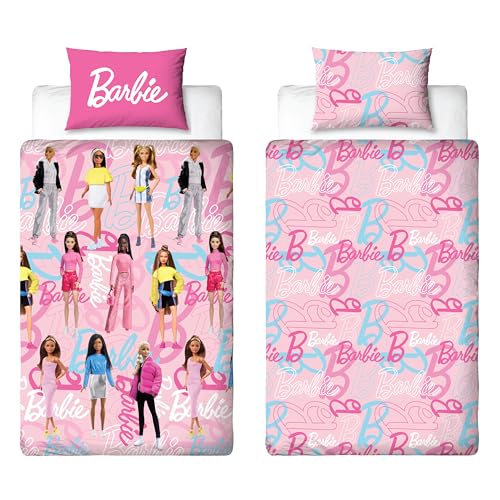 Barbie Official Single Childs Duvet Cover Set | Unboxed Design Reversible 2 Sided dolls Bedding Including Matching Pillow Case Brands Polyester Single Quilt Cover, Pink