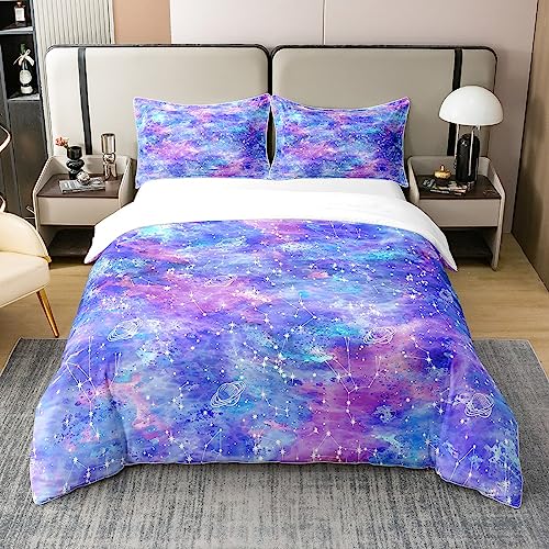 Tie Dye Constellation Print Bedding 100% Cotton Set Ombre 100% Cotton Duvet Cover Gradient Galaxy Blue Purple for Boys Girls Children Teens Bedroom Decor Duvet Set Single Size Zipper Quilt Cover 2Pcs