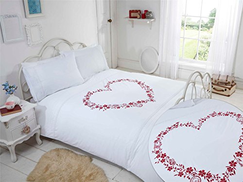Rapport Home Floral Heart Embroidered Single Duvet Quilt Cover & 1 Pillowcase Beddi
