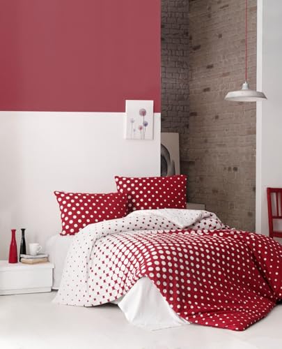 Nuit Des Rêves Ranforce Single XL Quilt Cover Set (155 x 200 cm), 100% Cotton, Red & White, Machine Washable, 140 Thread Count, Button & Envelope Closure, Cosy & Stylish Bedding