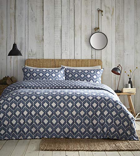 Rapport Home Vintage Style Blue Single Quilt Duvet Cover and Pillowcase Set Bedding Bedlinen, Polyester-Cotton
