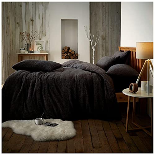Brentfords Teddy Fleece Duvet Cover Single Black, Fluffy Christmas Bedding Single Quilt Cover Winter Bed Set Comfy Soft Warm Duvet Set with Pillowcase Easy Care