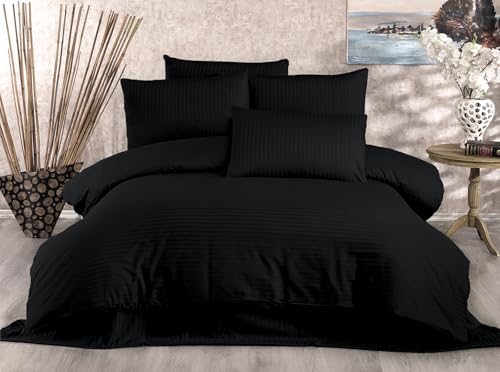 Nuit Des Rêves Premium Single XL Quilt Cover Set, Black, 155 x 200 cm Duvet & 80 x 80 cm Pillowcase, 80% Cotton, 20% Polyester, 229 Thread Count | Machine Washable at 30°C