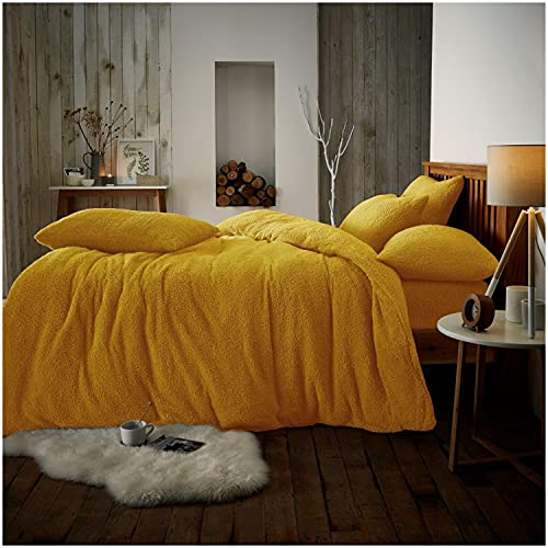 GC GAVENO CAVAILIA Teddy Bear Fleece Plain Single Quilt Cover Set - Soft Thermal Warm & Cosy Fluffy Single Bedding Set - Ochre - 137cm x 200cm