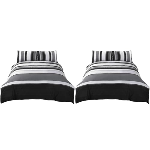 Rapport Striped Grey 2 pcs, Single Quilt Duvet Cover & Pillowcase Bed Set Adults Teenagers, Polyester-Cotton, (Pack of 2)