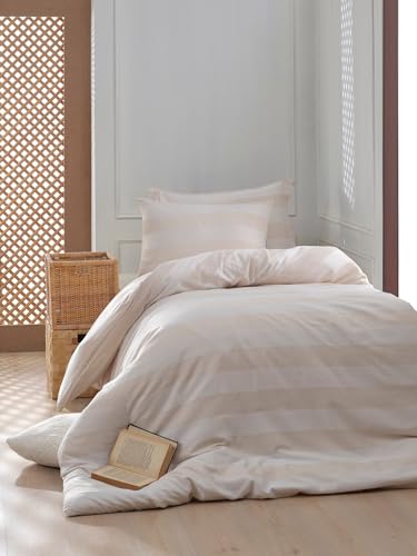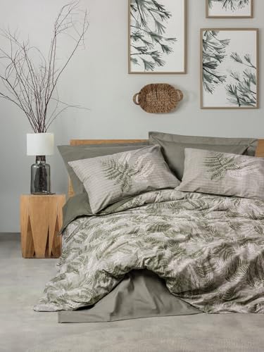 Nuit Des Rêves Ranforce Single XXL Quilt Cover Set, Khaki, 155 x 220 cm, 100% Cotton, Pigment Printed, Machine Washable, Envelope & Button Closure, Soft & Durable