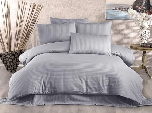 Nuit Des Rêves Ranforce Single XL Quilt Cover Set (155 x 200 cm), 100% Cotton, Grey & White, Machine Washable, 140 Thread Count, Button & Envelope Closure, Cosy & Stylish Bedding