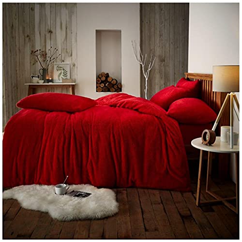 GC GAVENO CAVAILIA Teddy Bear Fleece Plain Single Quilt Cover Set - Soft Thermal Warm & Cosy Fluffy Single Bedding Set - Red - 137cm x 200cm