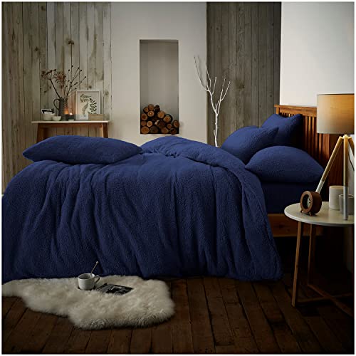 GC GAVENO CAVAILIA Teddy Bear Fleece Plain Single Quilt Cover Set - Soft Thermal Warm & Cosy Fluffy Single Bedding Set - Navy - 137cm x 200cm