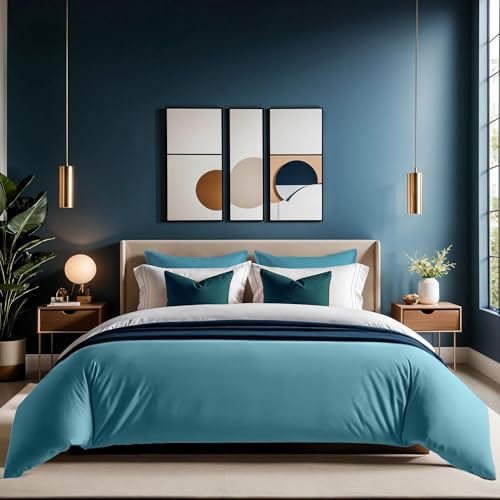 Premium Ranforce Single Quilt Cover, 135 x 200 cm, 100% Cotton, Petrol Blue, Button Closure, 145 Thread Count, Machine Washable at 30°C, Soft and Durable