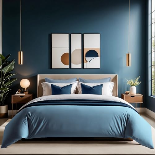 Nuit Des Rêves Dark Blue Single Quilt Cover Set (135 x 200 cm), 80% Cotton/20% Polyester, Includes 1 Pillowcase (80 x 80 cm), Machine Washable at 30°C, 229 Thread Count