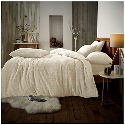 GC GAVENO CAVAILIA Teddy Bear Fleece Plain Single Quilt Cover Set - Soft Thermal Warm & Cosy Fluffy Single Bedding Set - Cream - 137cm x 200cm
