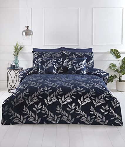 Rapport Home Navy Blue Bedding Set Elegant Floral Foil Printed Duvet Cover Set Single Crushed Velvet Quilt Cover Set (135 x 220 cm)