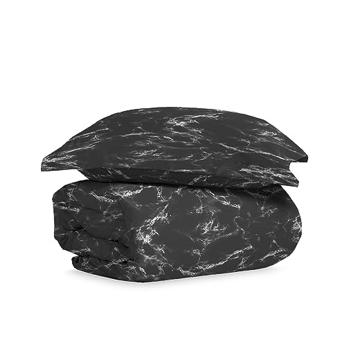Pizuna Cotton Single Marble Black Print Duvet Cover 140x200, 400 Thread Count 100% Long Staple Cotton Single Duvet Cover Set, Sateen Single Quilt Cover with Button Closure (Printed Duvet Cover)
