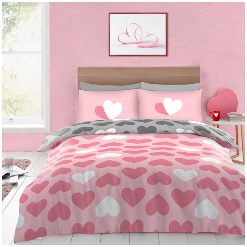 GC GAVENO CAVAILIA Heart Pink Duvet Cover With Pillow Cover - Breathable Love Heart Bedding Sets - Reversible Charcoal Hearts Single Quilt Cover Set