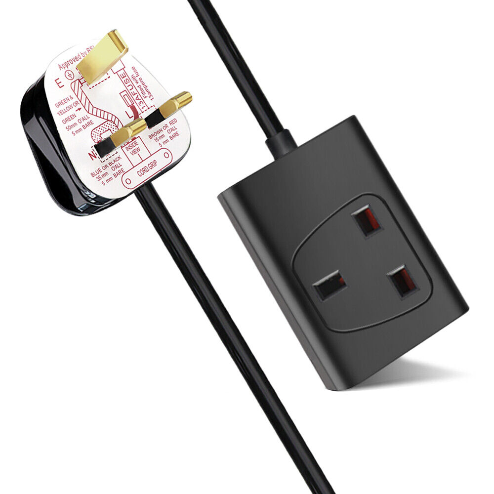 1 Way Gang Single Socket Mains Electric Extension Lead 2m Cable 13A UK Plug