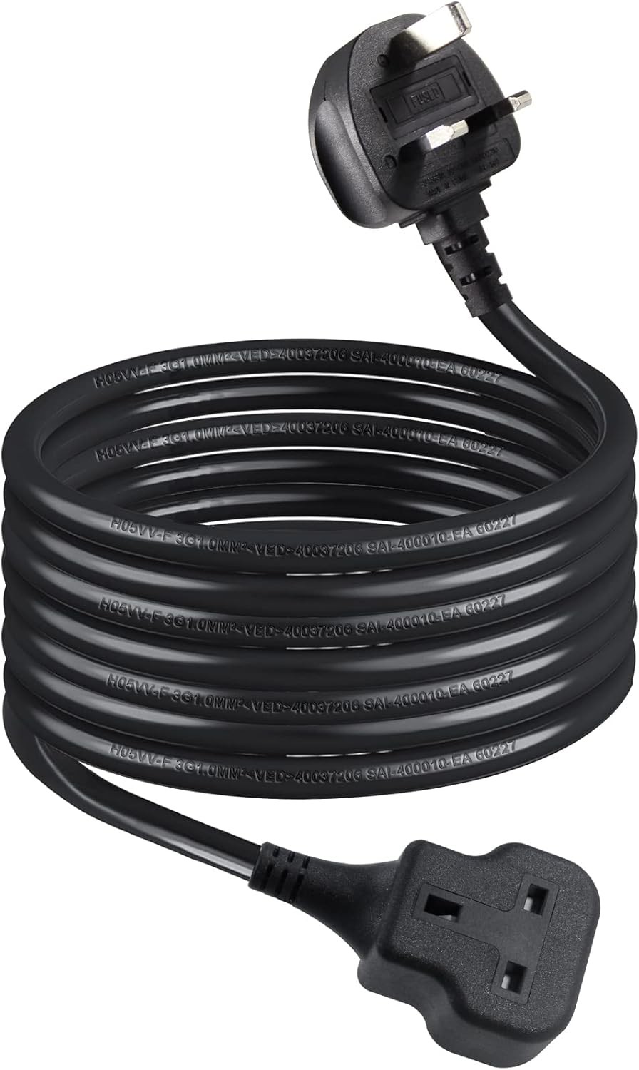 rhinocables IEC C13 Extension Cord Power Cable Lead with UK Pin Plug, Single Socket for Monitor, Kettle, PC, Computer Mains Power Supply, Black (3m)