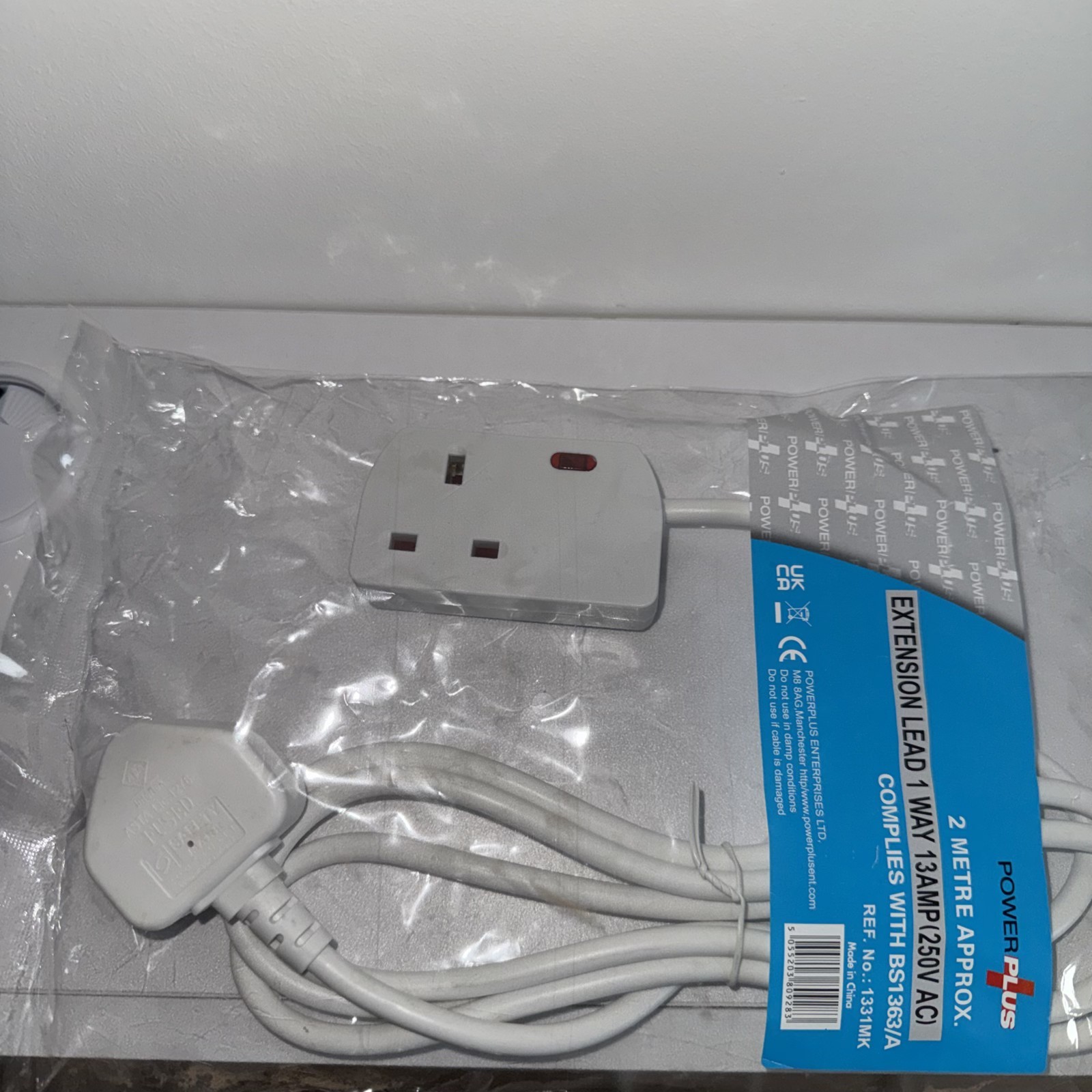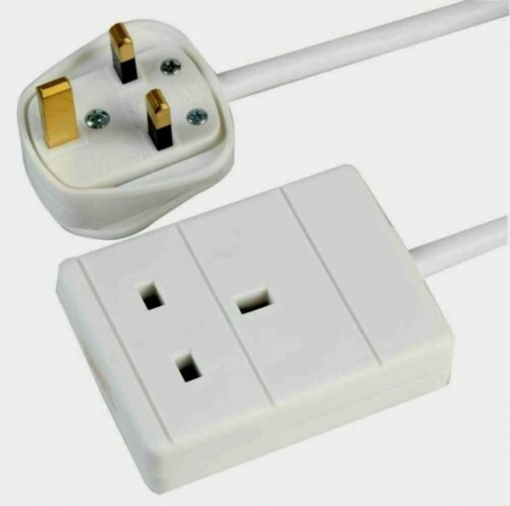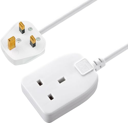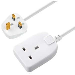 1 Way Gang Single Socket Power Mains Extension Lead 2 Metre Cable White