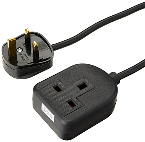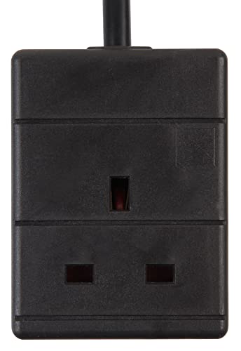 EXTRASTAR 1 Way Gang Single Socket Mains Power Extension Lead 13A UK 3Pin Plug - 2 Metre Cable, Black