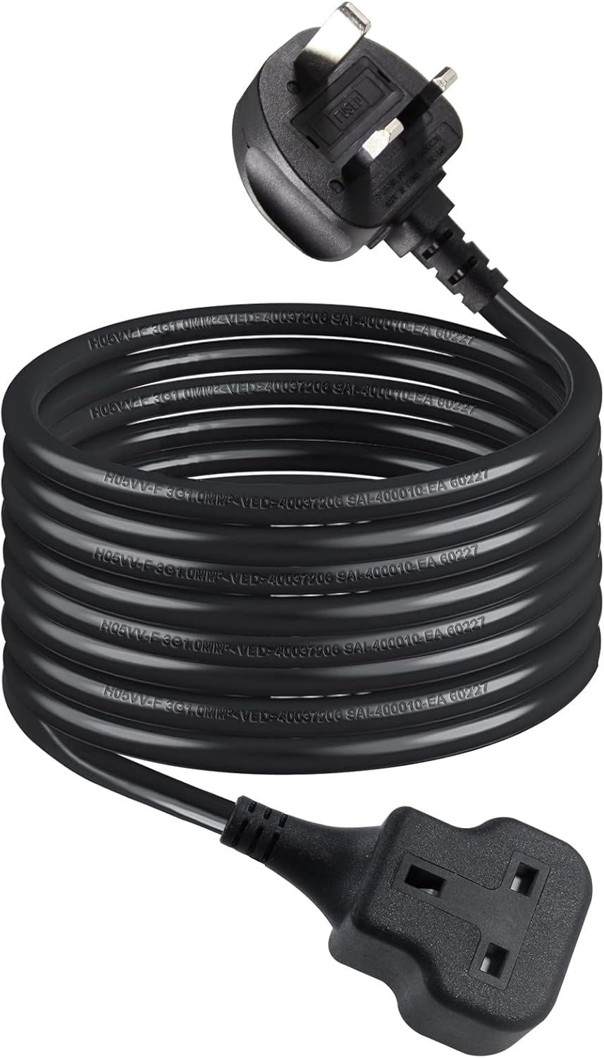 1 Way Gang Extension Lead 5M, Single Socket Mains Power Extension Lead 13A UK 3Pin Fused Plug male to female Travel Use Extension Cord Power Strip,