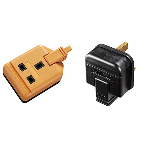 Masterplug EXS1315O-01 Heavy Duty Single Socket Extension Lead, 5 Metres, Orange & HDPT13B-MP Heavy Duty 13 Amp Rewireable Plug, 57.5 x 48 mm, Black