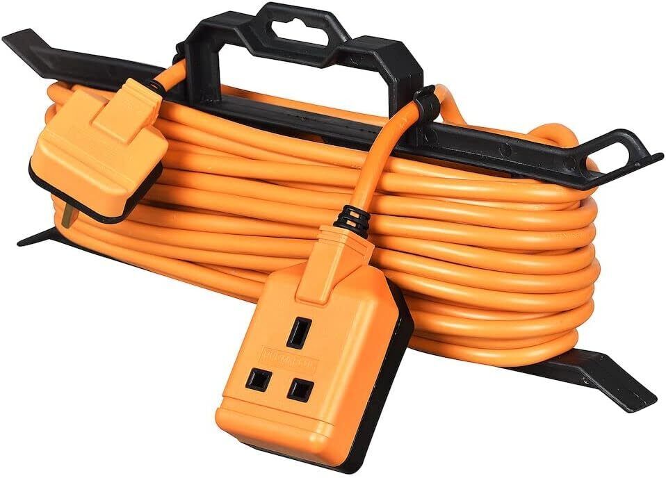 EXTRASTAR 1 Way Gang Single Socket Mains Power Extension Lead 13A Fused UK 3Pin Plug - 20 Metre Cable, Orange