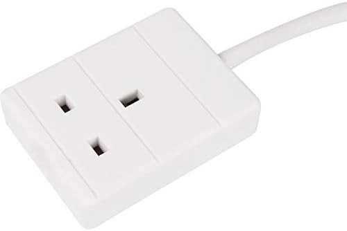 Extension lead 2 Meter long Single Socket Mains Power Extension Lead Approx 13 Ampere 1 Gang 3 Pin Heavy Duty UK Certified Lead Ideal For Multiple Appliances of Home & Office White