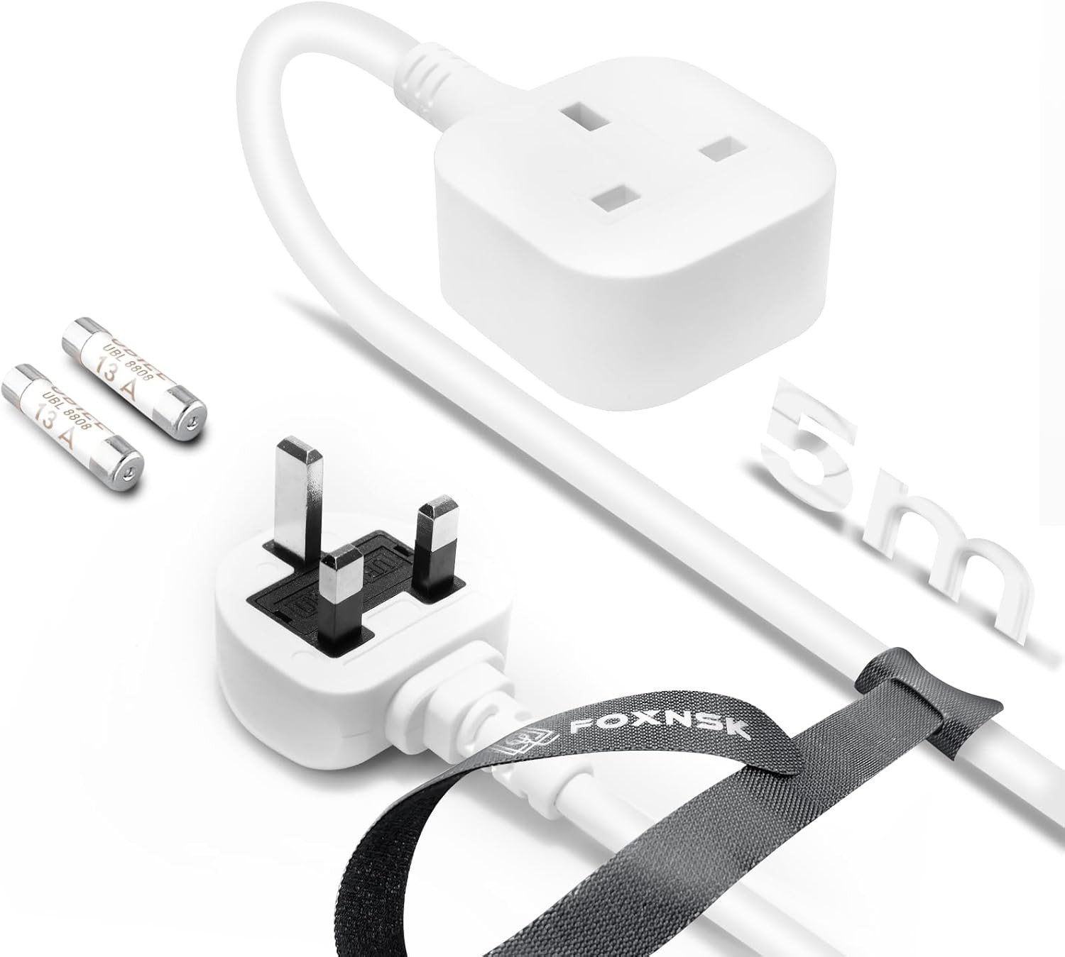 1 Way Gang Single Socket Power Mains Extension Lead 5M Metre Cable 13A White