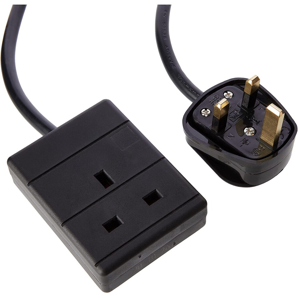 1 Way Gang Single Socket Power Mains Extension Lead 2M Cable 13A Black