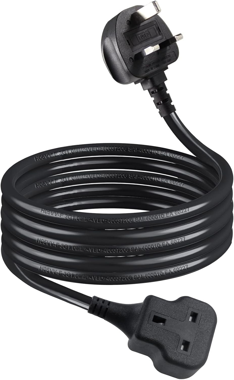 1 Meter Short Extension Lead Single Plug Socket Power Cable 13 Amp Extension Cord Electrical Socket Black