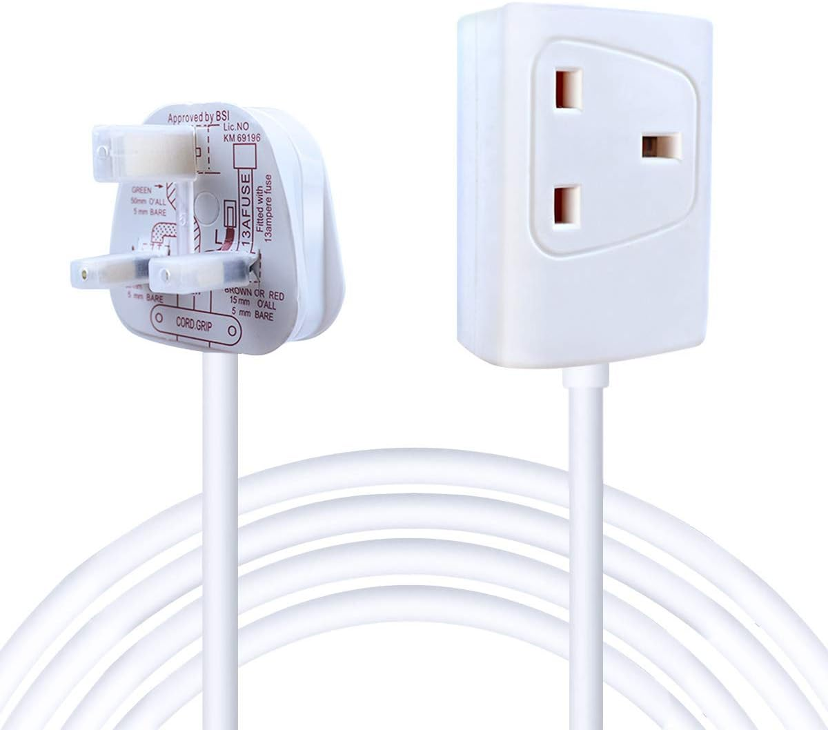 EXTRASTAR 1 Way Gang Single Socket Mains Power Extension Lead 13A Fused UK 3Pin
