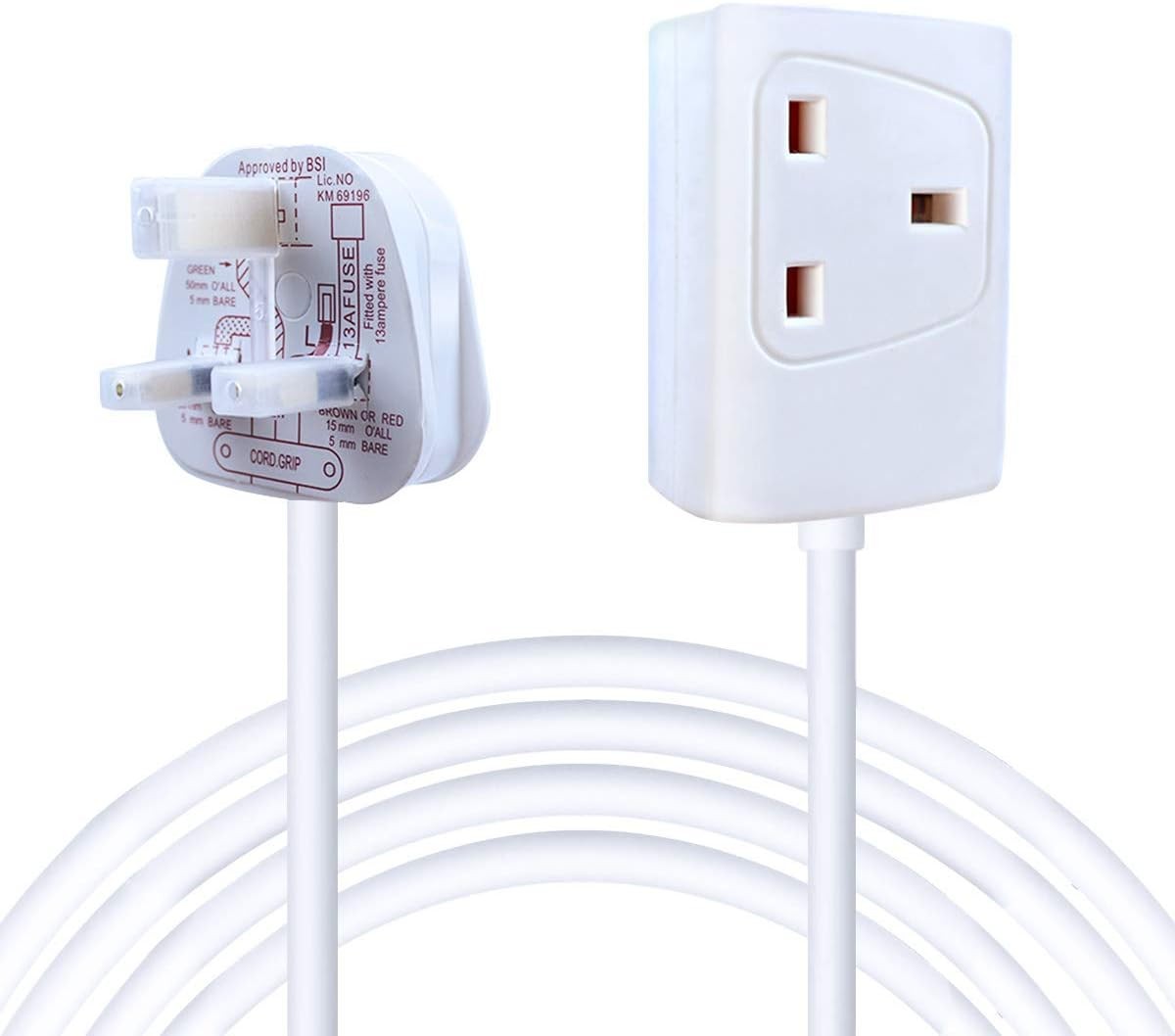 ExtraStar 1 Way Gang Single Socket Mains Power Extension Lead 13A UK 3Pin Plug