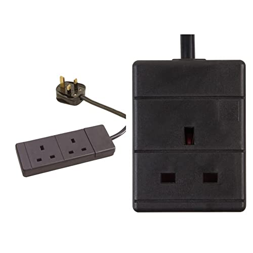 PRO ELEC PELB1736 2 Gang Extension Lead Black, 2m & Pro Elec PEL00517 1m 13 A 1 Way Gang Single Socket Power Mains Extension Lead Cable - Black