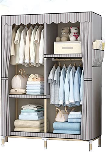 WWERTYY Portable Wardrobe Cloth Wardrobe Single Wardrobe,Stable Metal Wardrobe Folding Men Dorm Room Condominium Stratification Locker Fabric Wardrobe C,160 * 45 * 70cm Portable Cloth Hanger