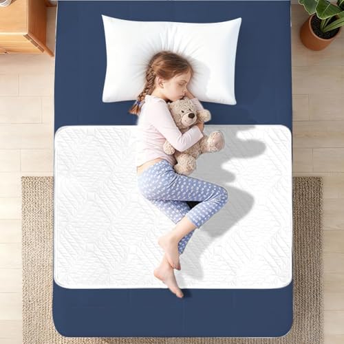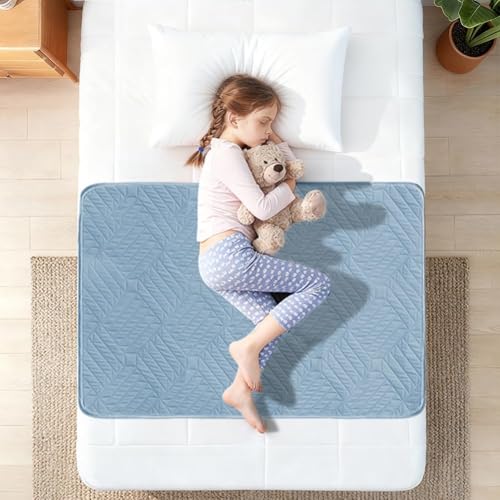 DUJUIKE Washable Incontinence Bed Sheets for Adults & Kids| Single Beds | 100% Waterproof Mattress Protector | Reusable Waterproof Bed Wetting Sheets | Absorbent Bed Protector | Reusable Blue Bed Pads