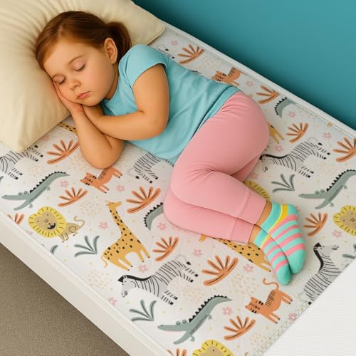 Manowie Potty Training Bed Pads | Washable 100% Waterproof Single Mattress Protector | Bedwetting Sheet for Toddler & Single Beds | Non Slip | Soft & Absorbent | UK Brand | Safari Animals