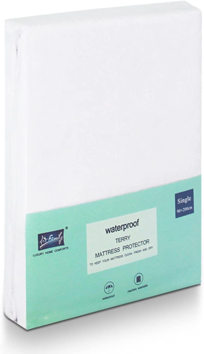 Family Bedding Terry Cotton 100 Percent Waterproof Single Bed Mattress Protector, 90 cm x 200 cm
