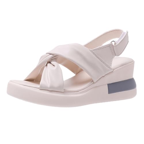 Cocila Walking Sandals For Women Uk Women'S Slope With New Summer Open Toe Single Shoes Fish Head Female Soft Leather Heightening White, 5.5 Arch Support Orthopedic Womens Height Sole Hiking
