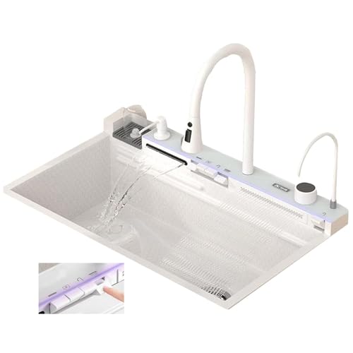 White Stainless Steel Sink Waterfall Sink Kitchen Sink Large Single Bowl Sink Multi-Function Digital Faucet Complete Accessories (68X45X23cm)
