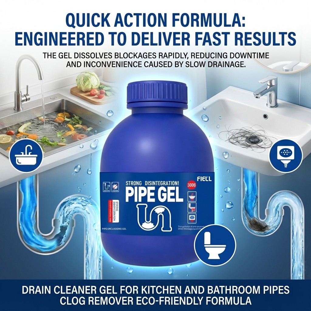 Drain Unblocker, Sink & Drain Cleaner, Fast Acting Heavy Duty Drain Gel, Dissolves Clogs, Works 3x Better Than Bleach, Safe for All Pipes, 500ml