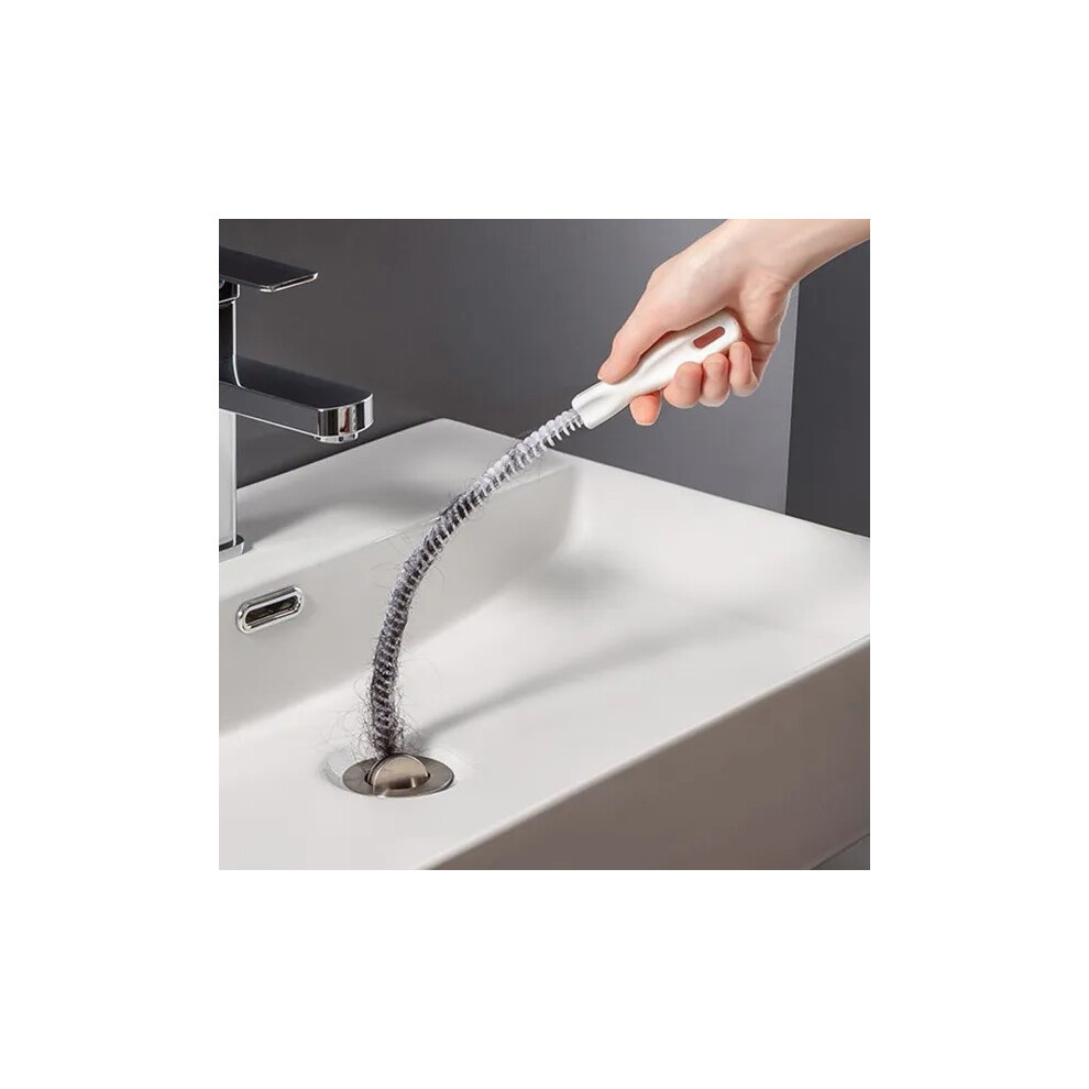 (White) Pipe Dredging Brush Bathroom Hair Sewer Sink Cleaning Brush Drain Cleaner Flexible Cleaner