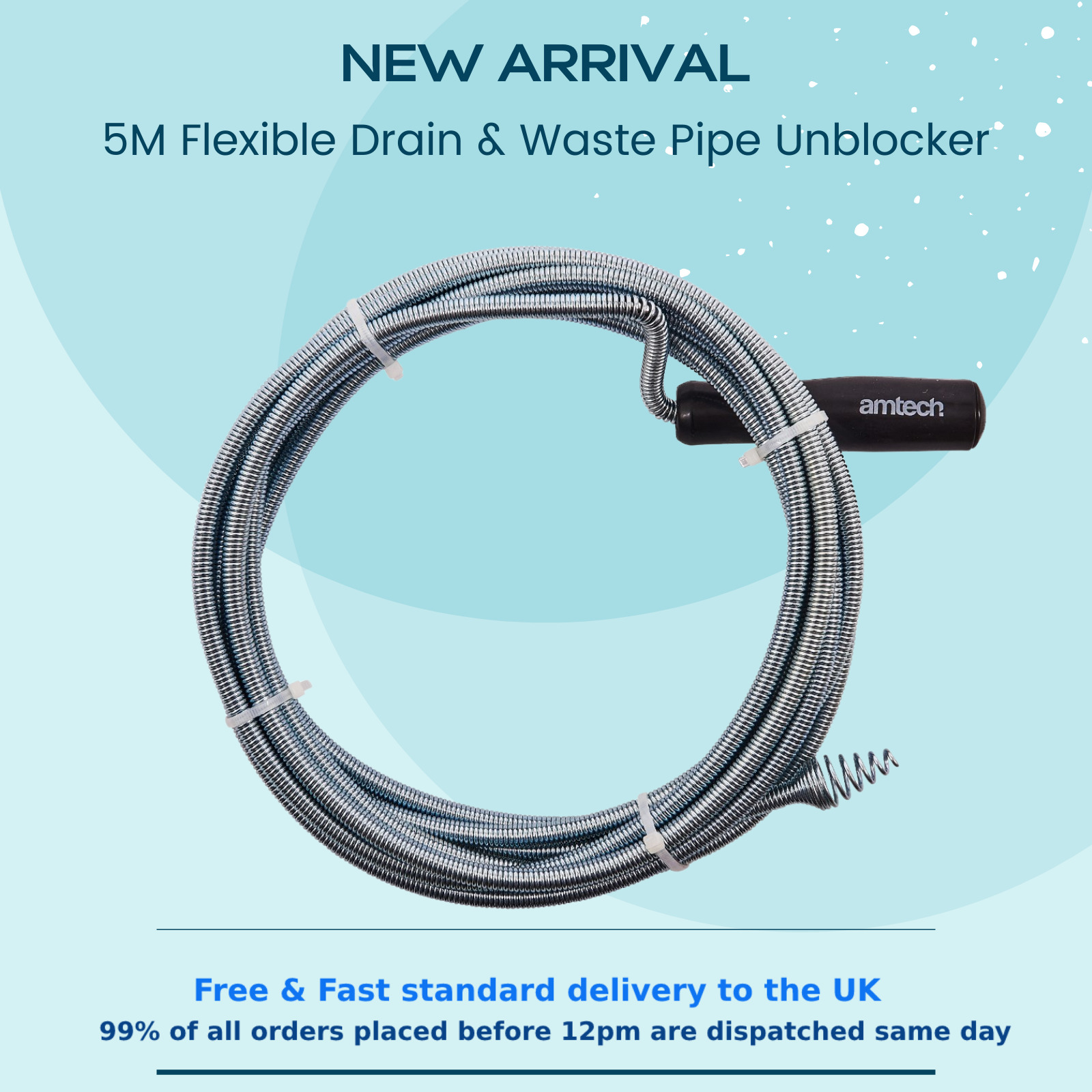 5m Flexible Wire Sink Drain Waste Pipe Cleaner Unblocker Unclog Kitchen Bath