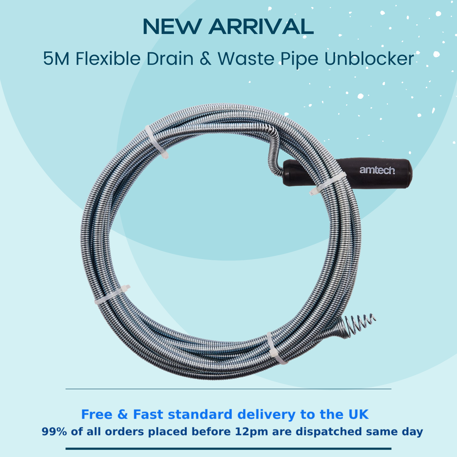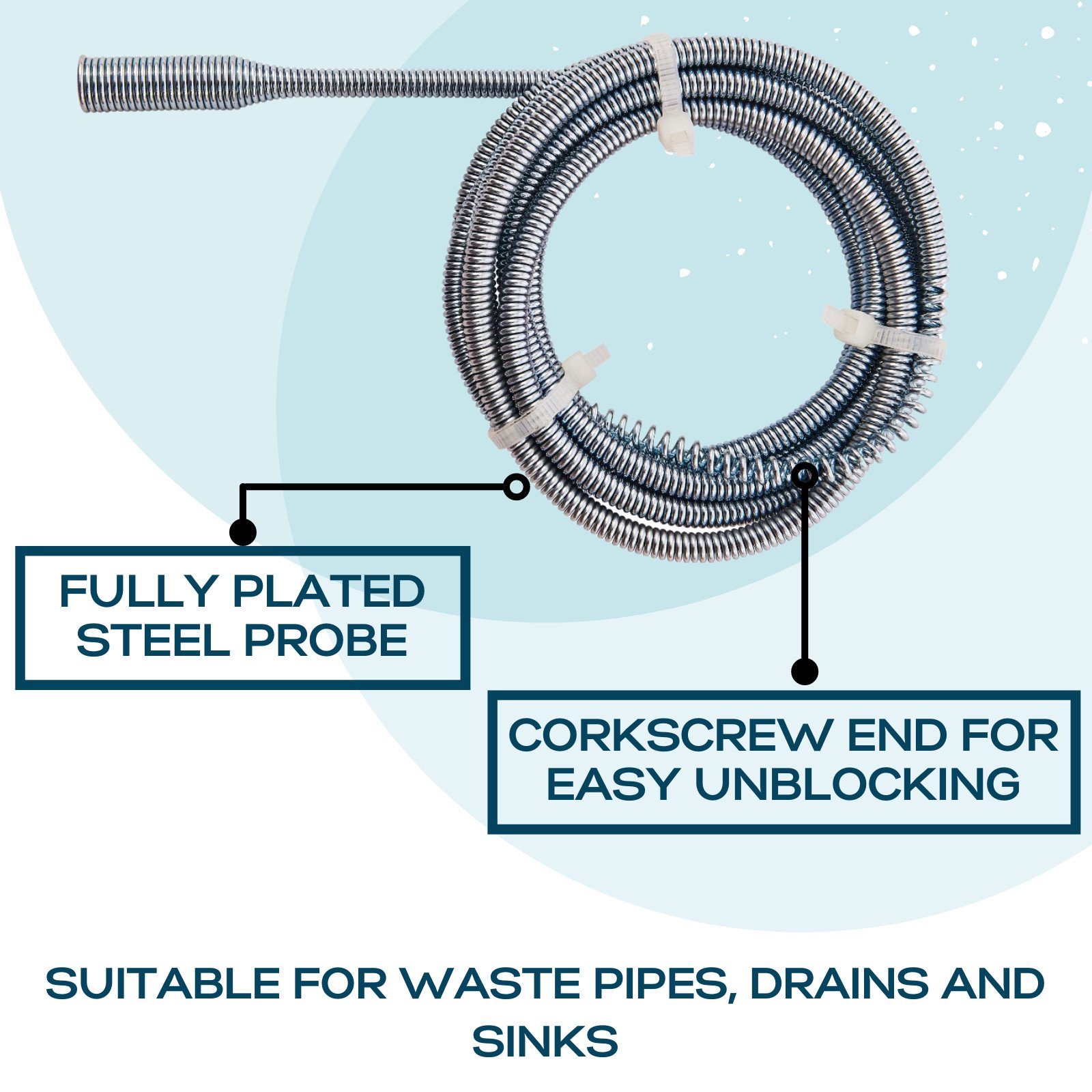Flexible Metal Sink and Drain Unblocker Cleaner 1m x 5mm UK STOCK FAST DELIVERY
