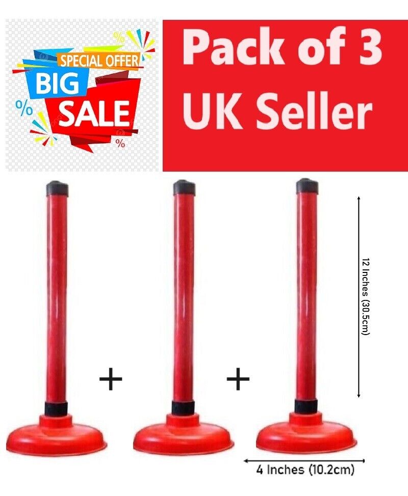 3 x Small Toilet Plunger Unblocker Bath Kitchen Sink Drain Pipe Cleaner- Red